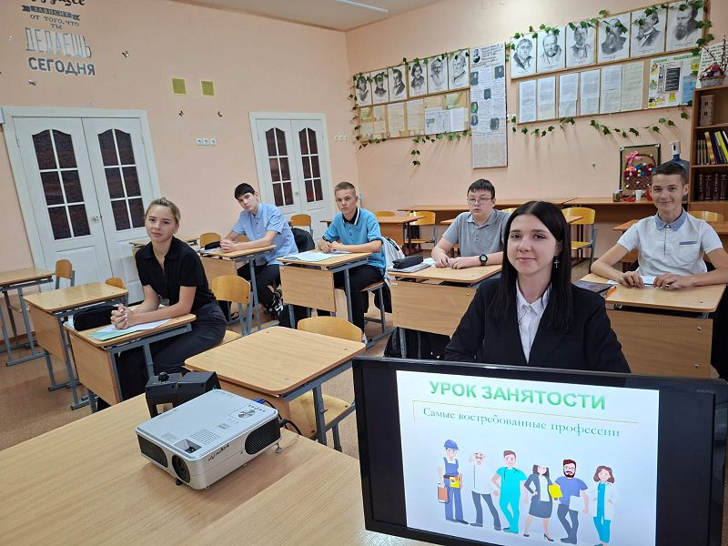 Сегодня, 9 октября 2025 года, в нашей школе состоялся областной Урок занятости для учащихся 9 – 11 классов. Эпиграфом к нашему уроку стали слова Конфуция «Найдите работу, в которую влюбитесь, и Вам не придется работать ни одного дня в своей жизни». Классные руководители акцентировали внимание на то, чтобы дети проходили диагностики на сайте «Билет в будущее» что поможет выпускникам ориентироваться в вопросах получения профессионального образования и осознанного выбора профессий, востребованных на рынке труда Ростовской области.