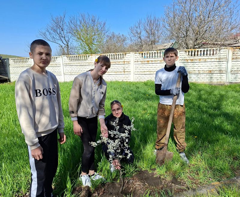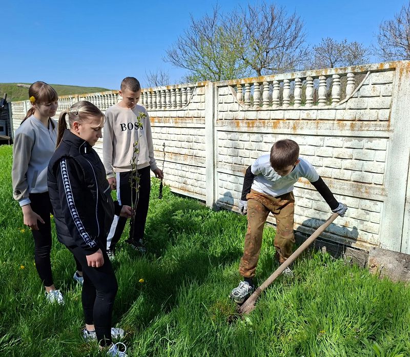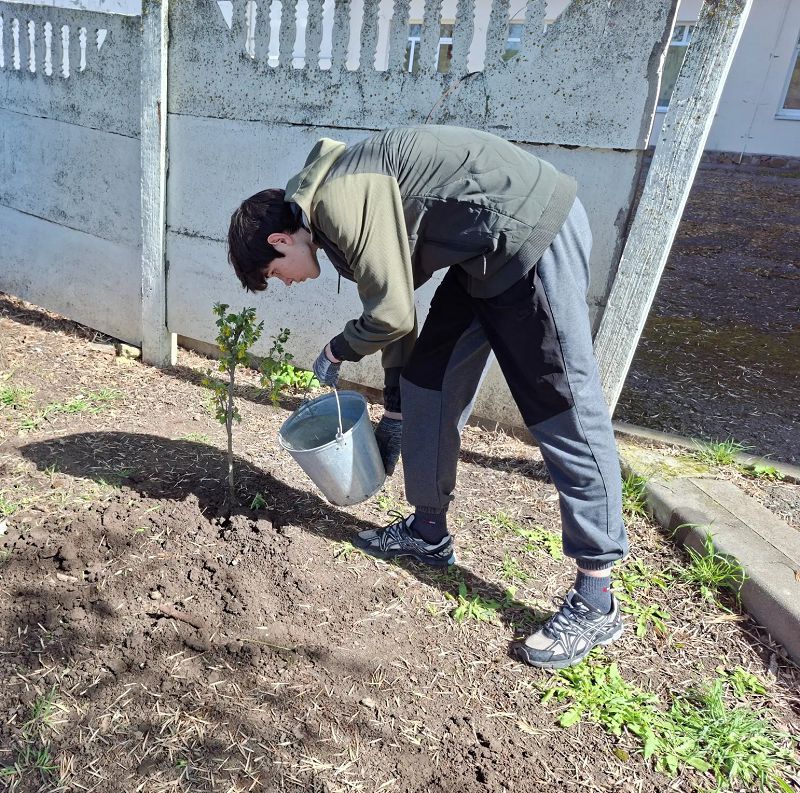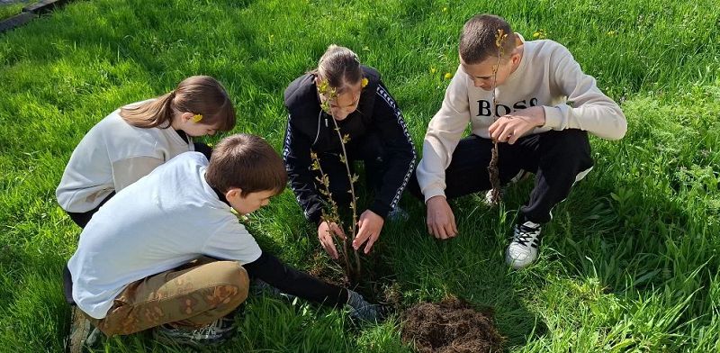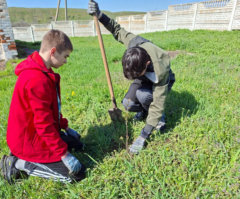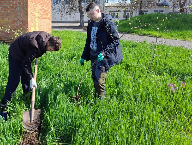 Вместе мы высадили молодые деревья, чтобы сделать территорию нашей школы зеленее и уютнее.