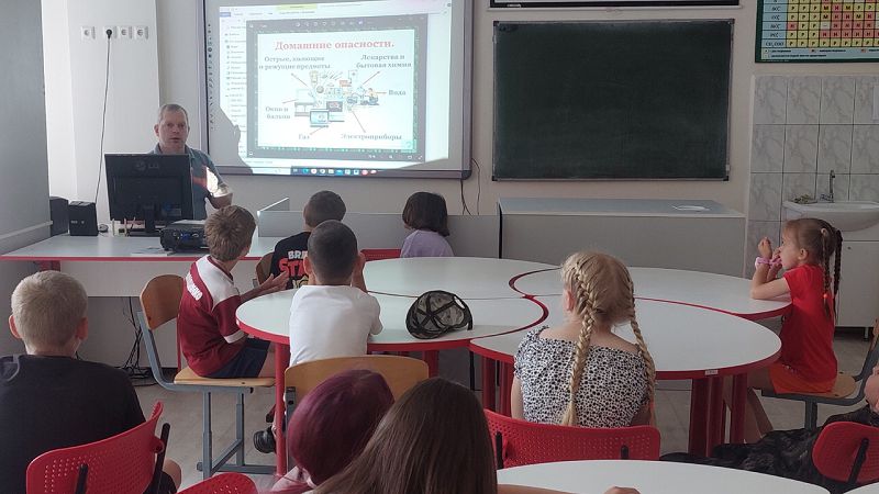 Сегодня в пришкольном лагере "Солнышко" состоялся день безопасности. Утро началось с традиционной зарядки, завтрака, а после ребята отправились на беседу "Опасности повседневной жизни".
