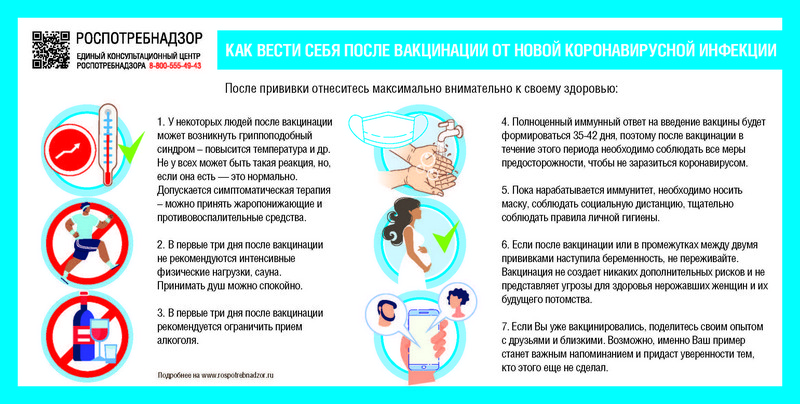 Рекомендуется в течение 3-х дней после вакцинации не мочить место инъекции, не посещать сауну, баню, не принимать алкоголь, избегать чрезмерных физических нагрузок.