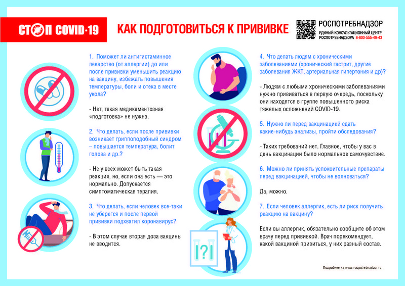 Врач расскажет Вам о возможных реакциях на вакцинацию и поможет заполнить информированное добровольное согласие на проведение вакцинации.