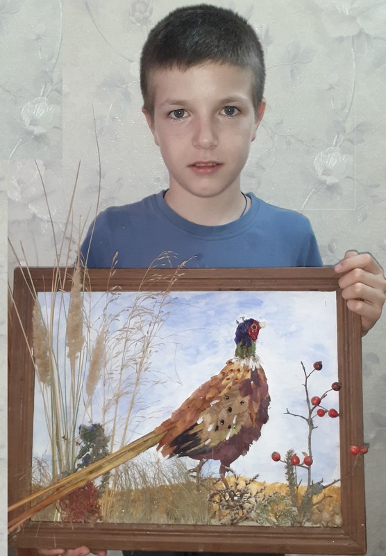 Творческая работа выполнена из природного материала в технике «Аппликация». Работа признана одной из лучших в номинации «Эко-живой символ малой родины».