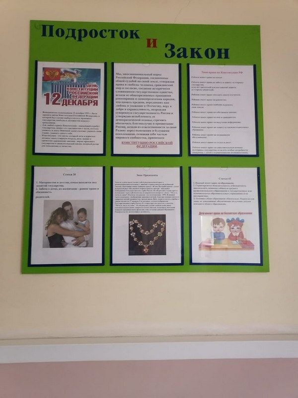 В холле школы оформлен стенд, посвященный основному закону Российской Федерации – Конституции.