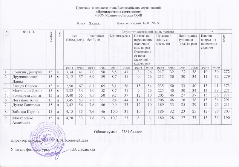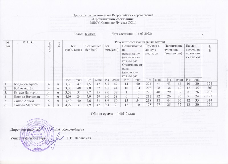 Согласно положения о« Президентских спортивных играх», во втором полугодии (январь-март), прошли соревнования среди учащихся МБОУ Кринично-Лугской СОШ по спортивному многоборью.