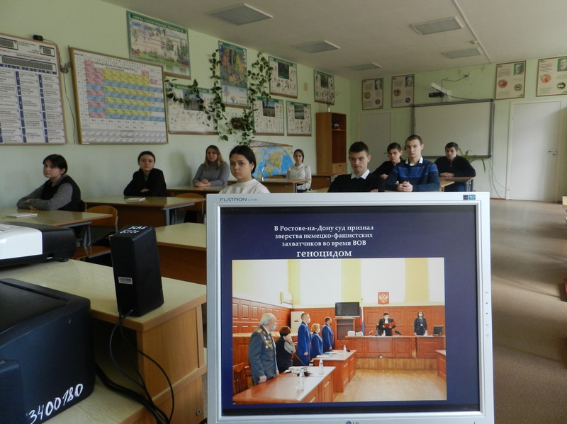 Классные руководители показали детям масштаб и характер преступлений нацистов в отношении мирных жителей оккупированной территории, дали им правовую оценку с исторической и современной точек зрения, раскрыли обучающимся понятие «геноцид» советского народа со стороны нацистов в годы Великой Отечественной войны с опорой на национальное и международное законодательство.