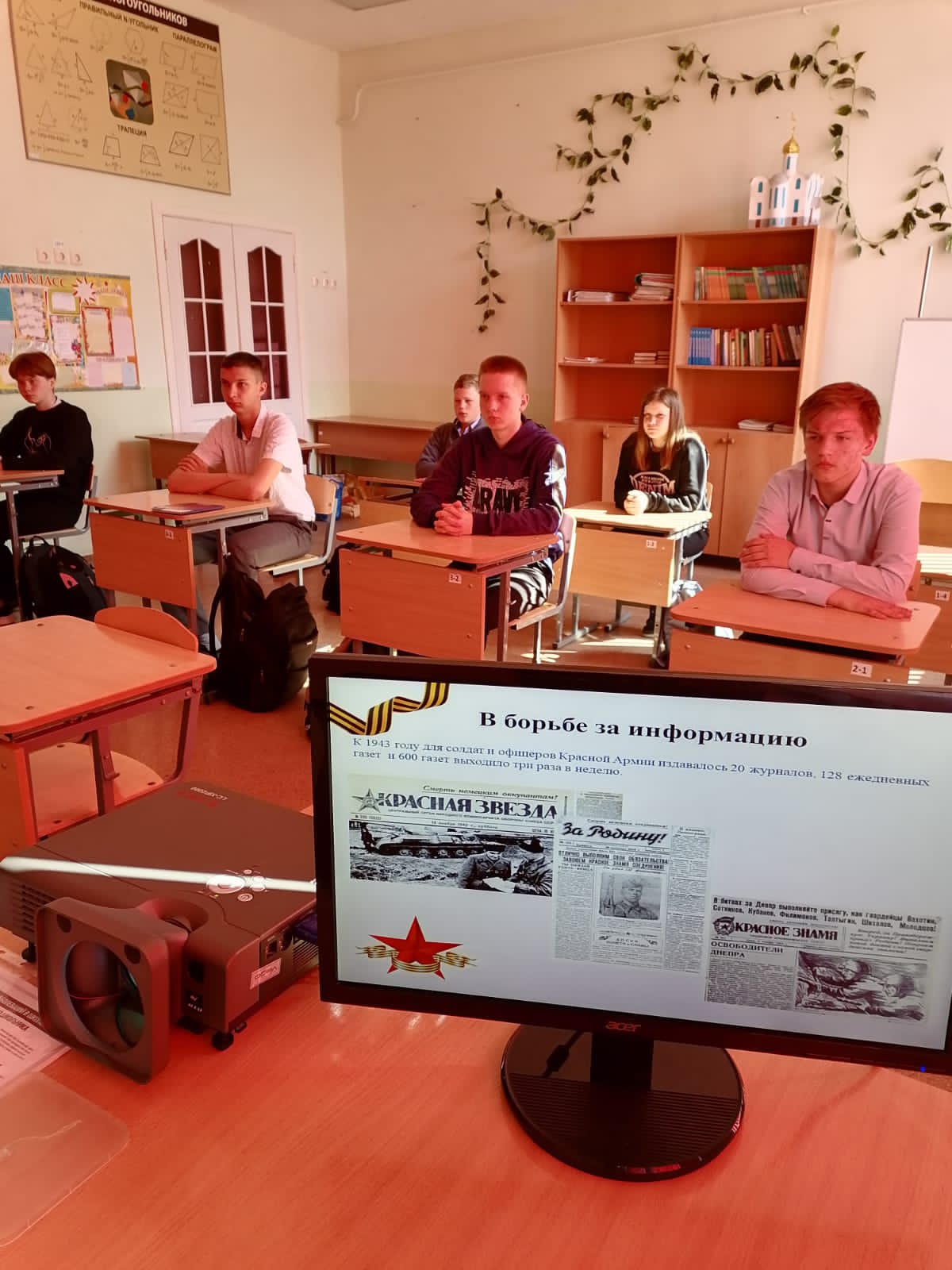 Ребята узнали, что военные журналисты и фотокорреспонденты ходили в атаки вместе с пехотой, забирались в башни танков, летали на штурмовиках и бомбардировщиках, опускались в морские глубины с экипажами подводных лодок, становились партизанами и подпольщиками. Из 10 тысяч журналистов-фронтовиков полторы тысячи пали на полях сражений.