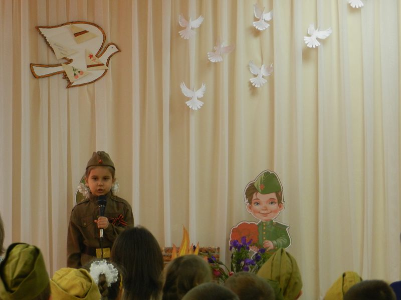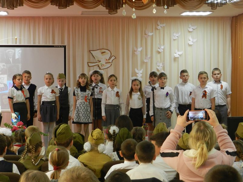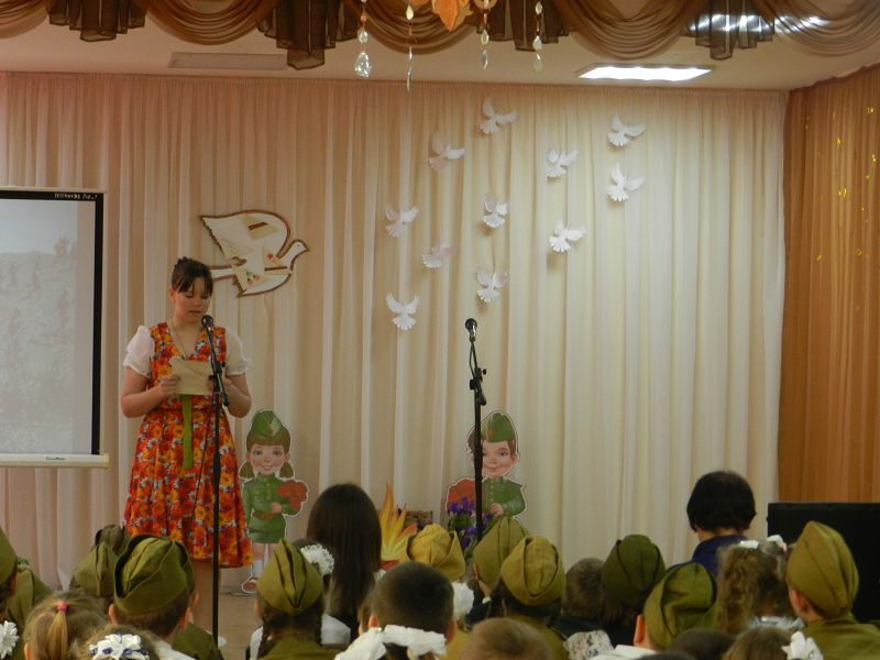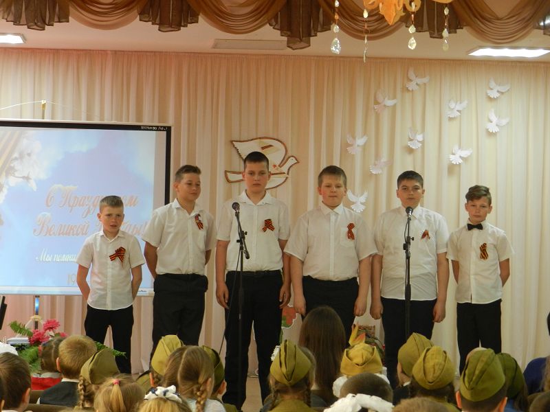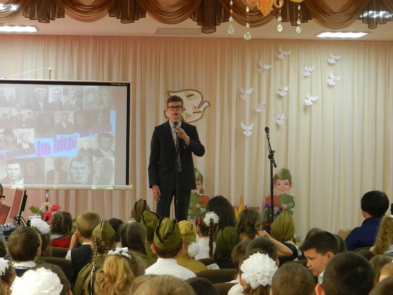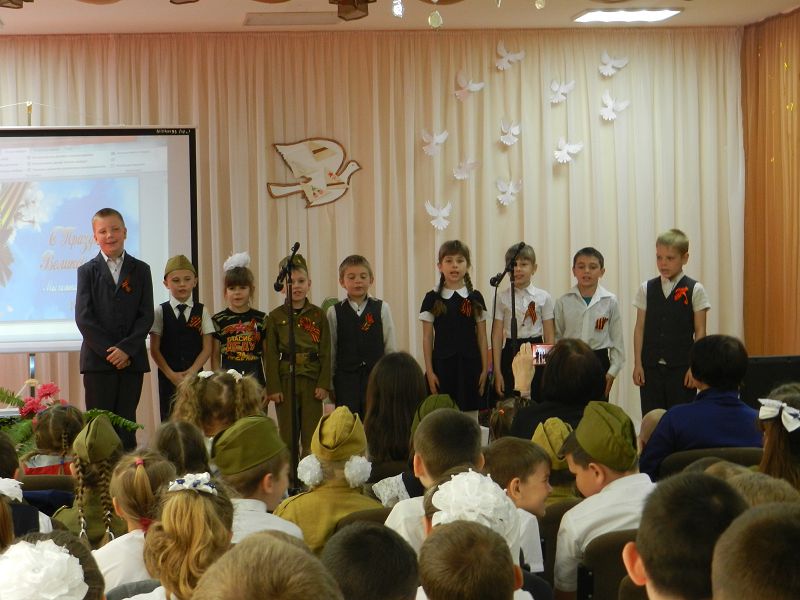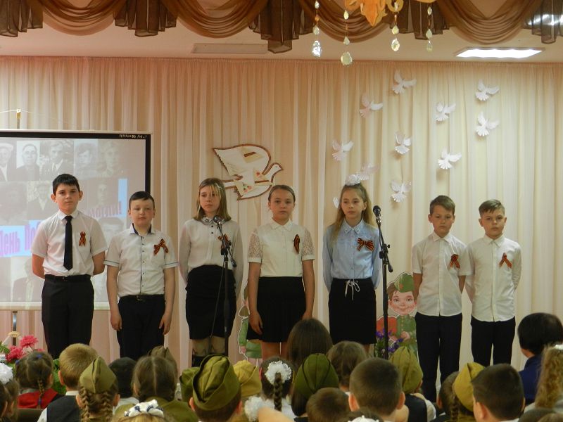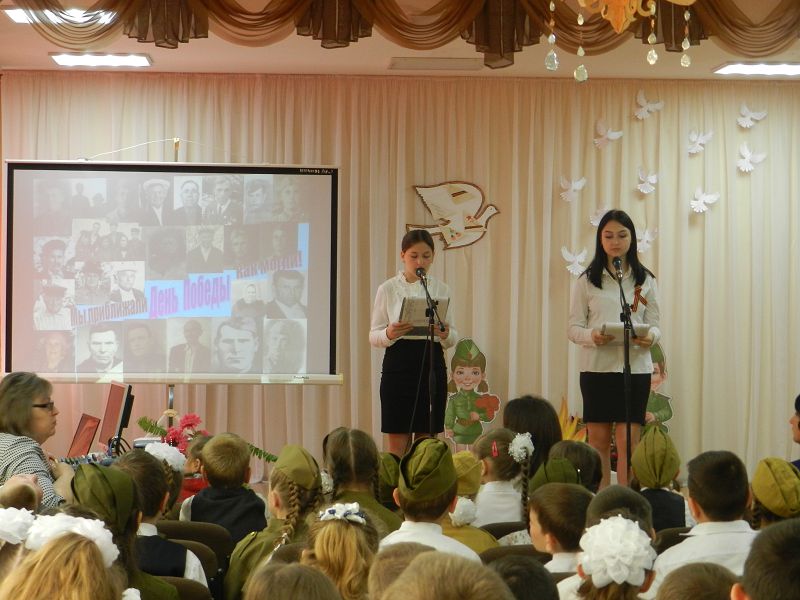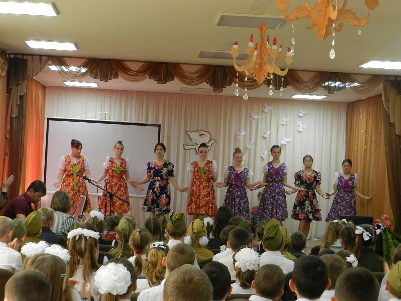Мероприятие прошло в торжественной обстановке, школа украшена фотографиями земляков - ветеранов Великой Отечественной войны, плакатами, подготовленными руками детей, макетом вечного огня и символикой праздника. После концерта директор школы Коломейцева Елена Александровна поздравила всех с праздником Великой Победы и пожелала всем мирного неба над головой.