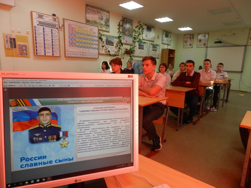 Ребята вместе со своими классными руководителями вспоминали яркие исторические примеры массового героизма и самоотверженности российских солдат и офицеров. Ведь русская земля всегда славилась своими героями – людьми, которые не задумываясь, порой ценой своей жизни, вставали на защиту родной земли или интересов своего народа.