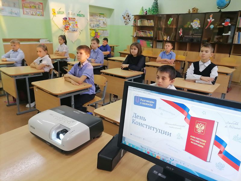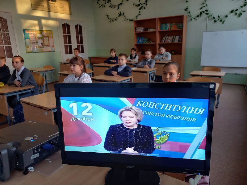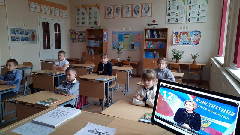Важная часть Конституции — это положения о том, как устроено российское государство. Классные руководители обратили внимание детей на первую статью, где сказано, что Россия — это правовое, демократическое, федеративное государство. Конституция России закрепляет права и устанавливает обязанности граждан. Зачем нужны права? Права человека — это высшая ценность. Они защищают граждан, позволяют им учиться, работать, развиваться! В то же время российские граждане несут конституционные обязанности.