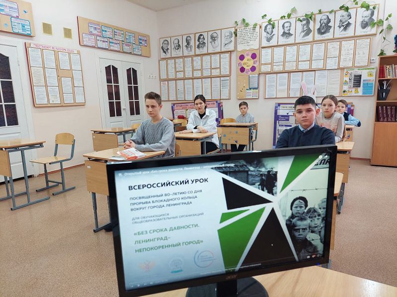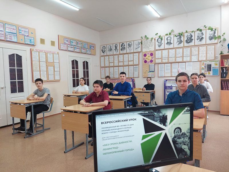 Сегодня в рамках Всероссийской акции, посвящённой Дню полного освобождения Ленинграда от фашистской блокады во всех классах школы прошли уроки мужества по теме «Без срока давности. Ленинград – непокоренный город», которые помогут обучающимся сохранять историческую память о трагедии советского народа в годы Великой Отечественной войны 1941-1945 годов.