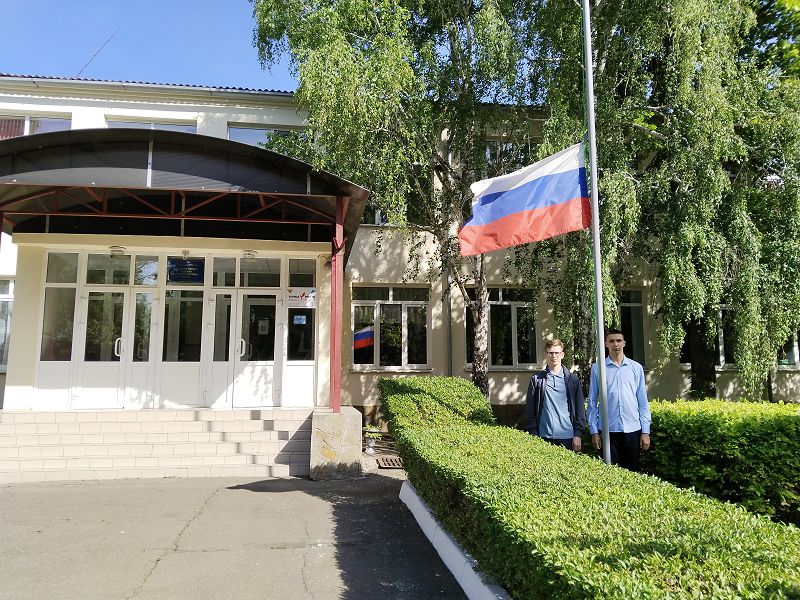 Вот, например ,сегодня мы можем назвать счастливыми ребят отлично завершивших учебный год. Самым лучшим из них Билому Алексею и Бугаёву Дмитрию, выпускникам 11 и 9 классов было предоставлено право поднять флаг Российской Федерации в начале новой учебной недели.