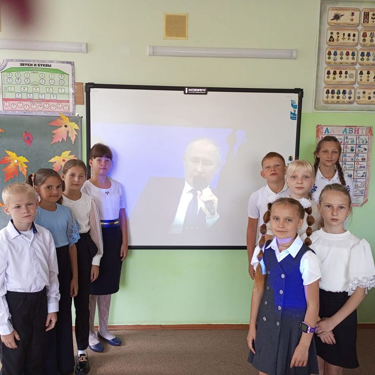 Классные руководители познакомили детей с тем, что 1 сентября Президент России Владимир Владимирович Путин провел традиционную встречу с победителями международных олимпиад и авторами социальных проектов. , что наш президент уделяет большое внимание образованию, науке и развитию.