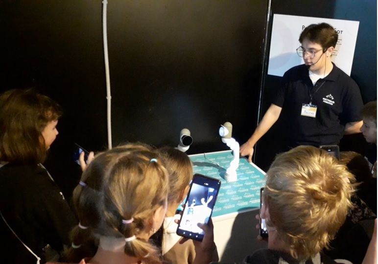 Три часа пролетели незаметно – техношоу ,игры с нейросетями, общение с известной робособакой, занятия с роботом-йогом, управление «умным домом», магическая квантовая комната, виртуальное путешествие в космос, мастер классы по изготовлению простейших мини роботов и созданию 3-д фигур своими руками, 3D-фотография в стиле аниме . Одно из незабываемых впечатлений – стать главным героем видеоролика о Гарри Поттере. Сказать, что всем понравилось,- ничего не сказать. Это был взрыв эмоций! Экскурсия была организована учителем технологии Черновой Галиной Васильевной, в рамках реализации общеобразовательной программы по предмету «технология» и программ дополнительного образования «Техническое моделирование» и «Робототехника».