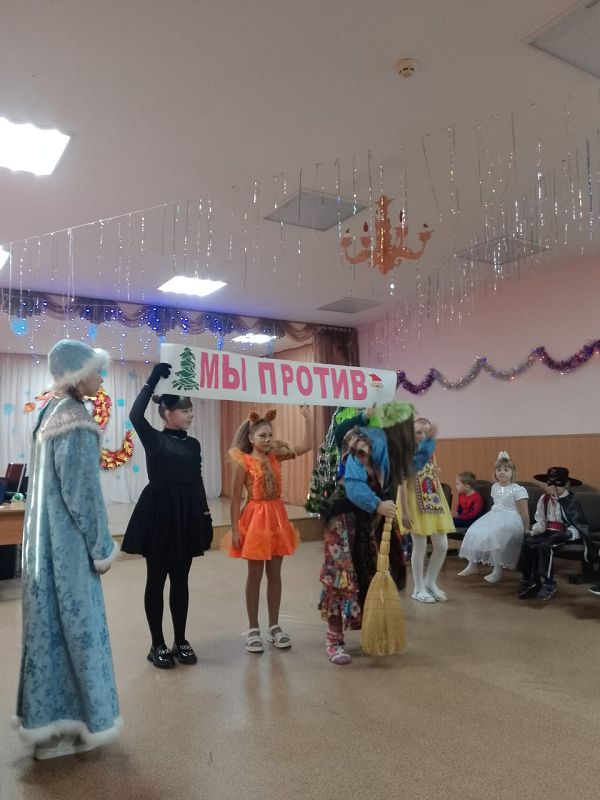 С самого начала представления сказочные герои увлекли детей в волшебный мир сказки. Дети смогли окунуться в праздничную атмосферу приключений, поучаствовать в интересных конкурсах. С появлением Деда Мороза начался настоящий праздник с песнями и танцами, хороводами вокруг ёлки, чтением стихотворений. После представления дети получили новогодние подарки.