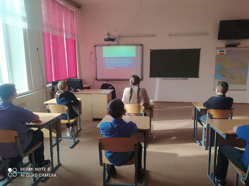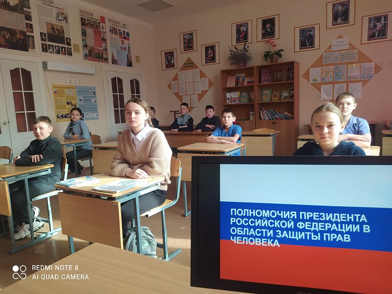 В рамках реализации проекта «Президент Российской Федерации – гарант прав и свобод человека и гражданина», направленного на информирование детей о роли Президента Российской Федерации, 13.03.2024г. в нашей школе прошел открытый урок, в котором приняли участие учащиеся 5 – 11 классов, в количестве 35 человек.