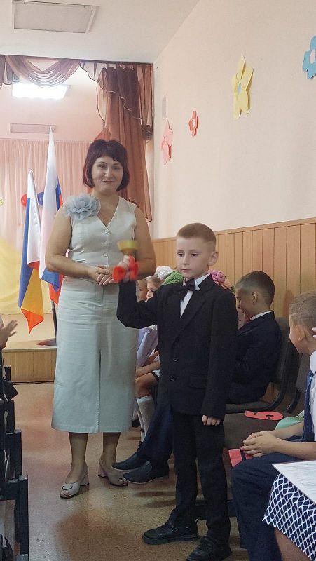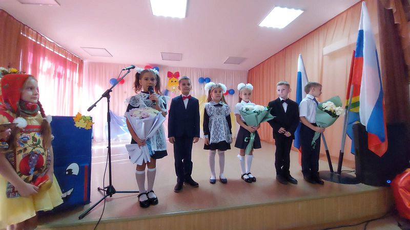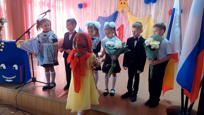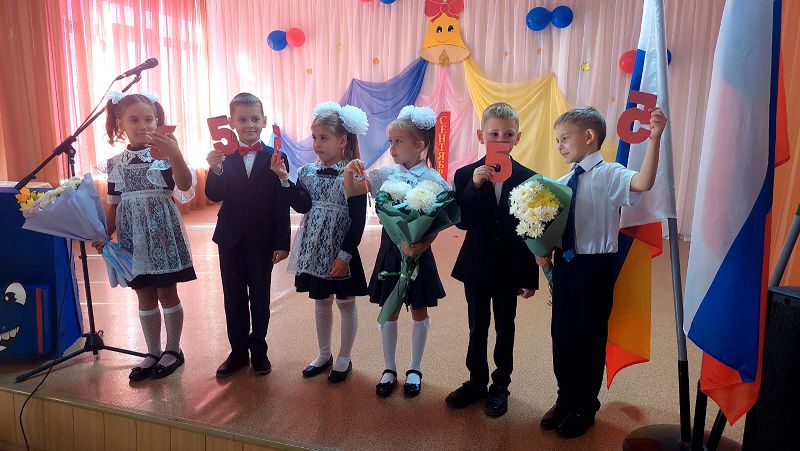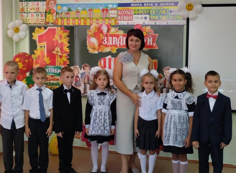 Первоклассниками стали: Болдарев Виталий, Кирсанов Егор, Копаева Алина, Данилин Александр, Костенко Варвара, Лазарева Надежда, Колесников Кирилл. После торжественной линейки первоклассники отправились на свой первый в жизни урок – Урок Знаний.