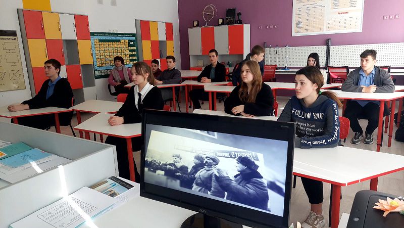 О славной странице военной истории страны – освобождении столицы нашей области – рассказали научные сотрудники музея Родион Гусаков и Анна Крестина. Школьники не только познакомились с ходом битвы за Ростов, но и смогли взглянуть на эти события глазами его участников, благодаря прозвучавшим отрывкам из мемуаров командующего Южным фронтом Р.Я. Малиновского, генерал-лейтенанта В.Ф. Герасименко и командира батальона 159 стрелковой бригады Г.К. Мадояна. Его воспоминания о боях в городе 8-14 февраля 1943 года стали одними из центральных в ходе урока.