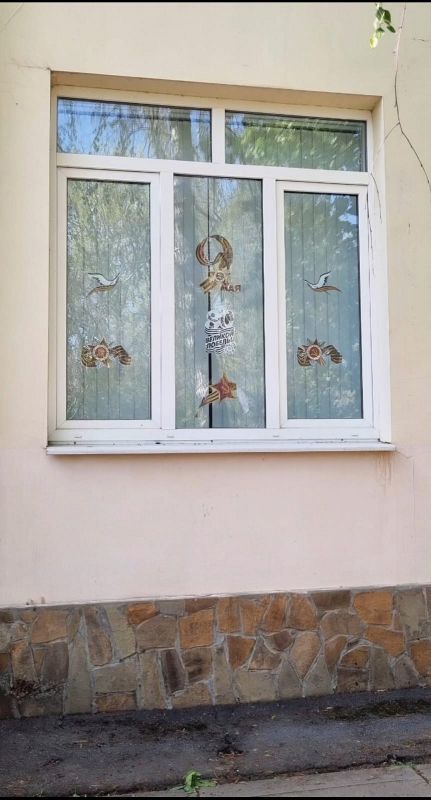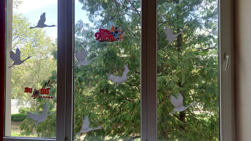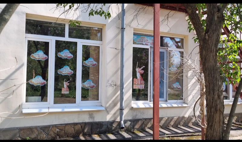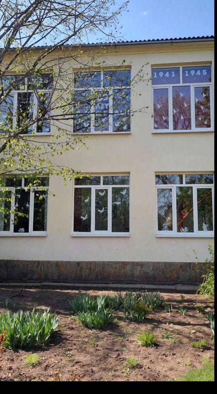 Оформление школы к празднику Победы стало нашей доброй традицией. В целях патриотического воспитания, любви к Родине и уважения к старшему поколению, ребята вместе с учителями заранее оформили школу. Холл школы, окна, забор украшены в честь 9 мая.