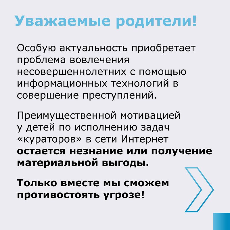Уважаемые родители! Особую актуальность приобретает проблема вовлечения несовершеннолетних с помощью информационных технологий в совершение преступлений.