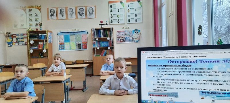 Сегодня на классных часах, перед уходом на зимние каникулы дети познакомились с основными правилами безопасности во время зимних каникул