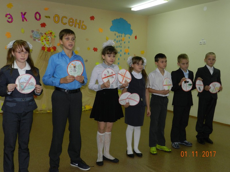 С призывом «Беречь планету!» со сцены обратились к присутствующим учащиеся 2 класса и исполнили частушки о том, как не надо себя вести на природе. А вот учащиеся 3 класса отметили, что начинать надо с себя и в музыкальной форме высказали свои предложения по защите природы и окружающей среды. Учащиеся 4 класса своими руками изготовили «Запрещающие знаки» для тех, кто любит отдохнуть на природе. Все участники четко усвоили правила поведения на природе и пообещали их выполнять.