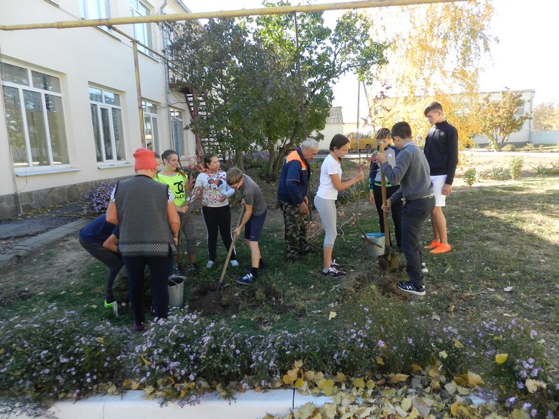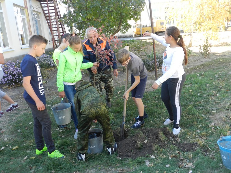 Учащиеся нашей школы приняли активное участие в областном празднике «День древонасаждения». В этом году были посажены кустарники, которые следующей осенью окрасят школьный двор в яркий бордовый цвет.
