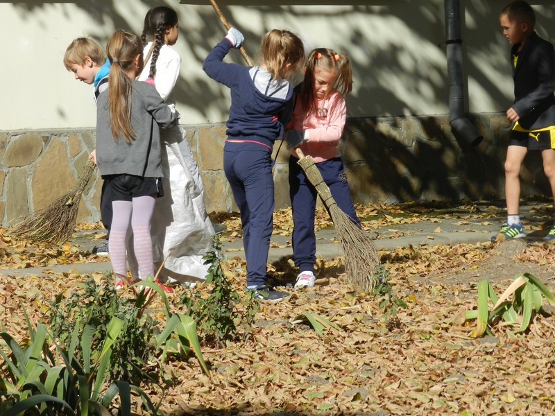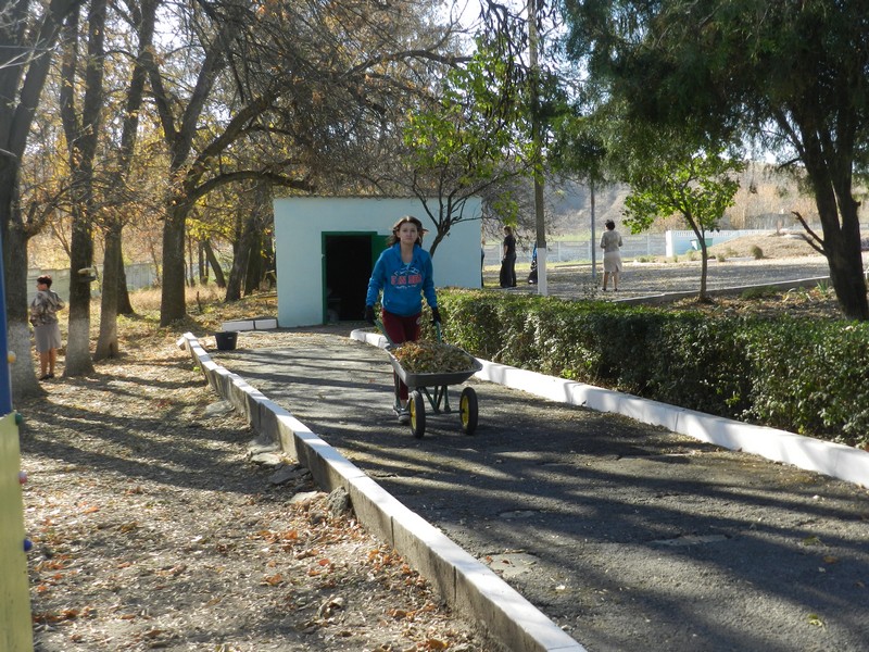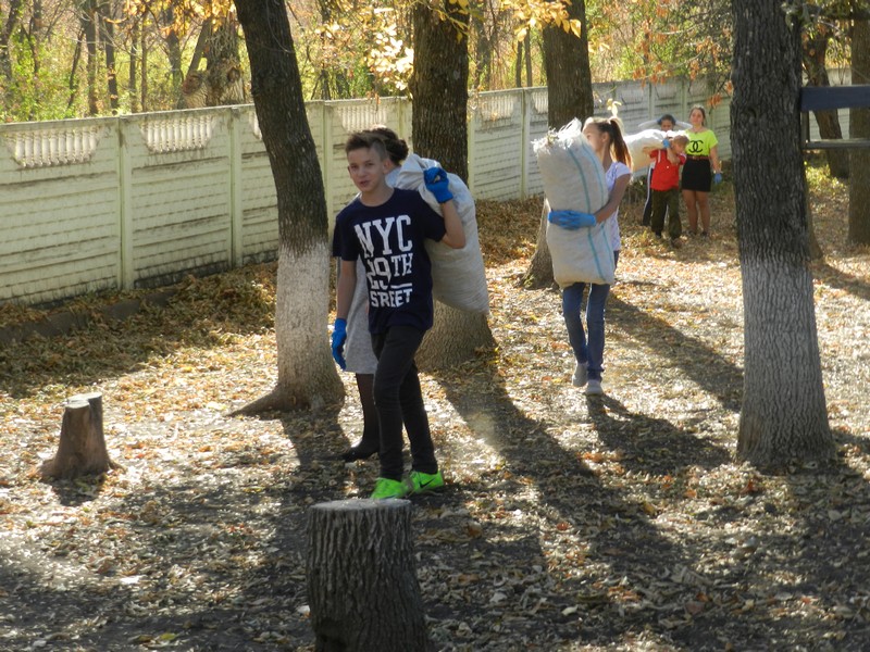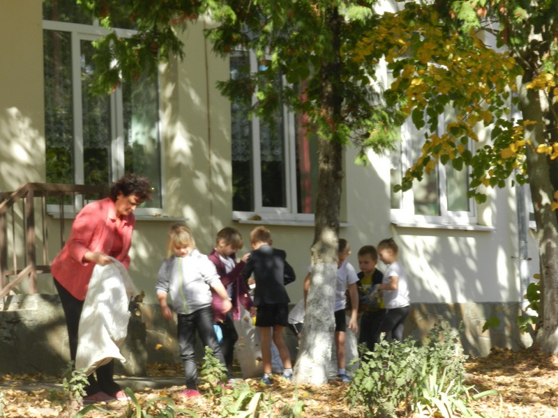 Осень прекрасная пора года, ярками красками пестрит территория школы. Пришло время деревья сбросили свой красивый наряд, и учащиеся, все от мала до велика, вышли на субботники по уборке школьного двора.