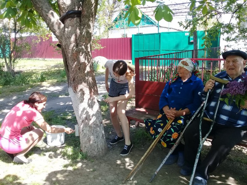 На сегодняшний день у нас проживают всего 5 ветеранов ВОВ, которые в годы войны копали окопы, ухаживали за раненными в передвижном госпитале, работали на полях. Волонтеры оказали помощь одиноким ветеранам: убрали скошенную траву, пропололи клумбы, побелили деревья, подмели придомовую территорию. Ветераны были очень рады помощникам.