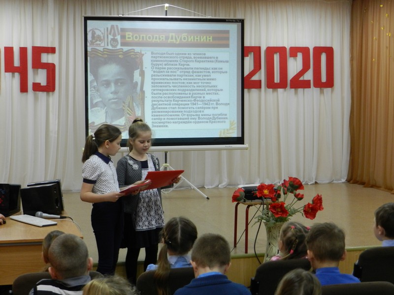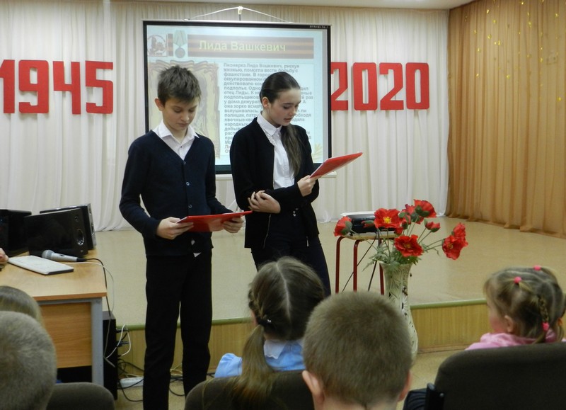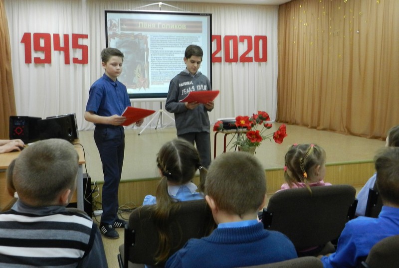 Маленьким героям большой войны был посвящен общешкольный классный час, который прошёл в нашей школе 27.02.2020 года. Обучающиеся школы рассказали о пионерах-героях, которые до войны были обыкновенными мальчишками и девчонками. Учились, помогали взрослым, играли. Их имена знали только родные и одноклассники.