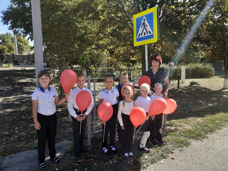 В сопровождении учителя Ковдря М.В. первоклассники отправились на пешеходный переход закрепить знания по ПДД. Завершился урок флешмобом. Первоклассники выстроились с красными шарами в руках, обращая внимание водителей, на то, что на дороге юные пешеходы – первоклассники. Мероприятия проходили в рамках широкомасштабной акции «Внимание, дети!» и Неделя дорожной безопасности, посвященных началу нового 2020-2021 учебного года.