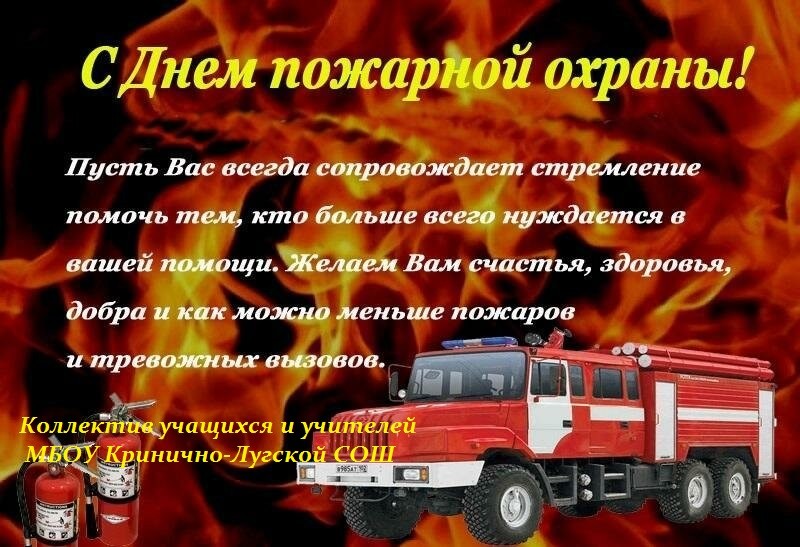 В профессиональный праздник – День пожарной охраны наши друзья из пожарной части 227 в с.Лысогорка получили видеопоздравление от учеников нашей школы.