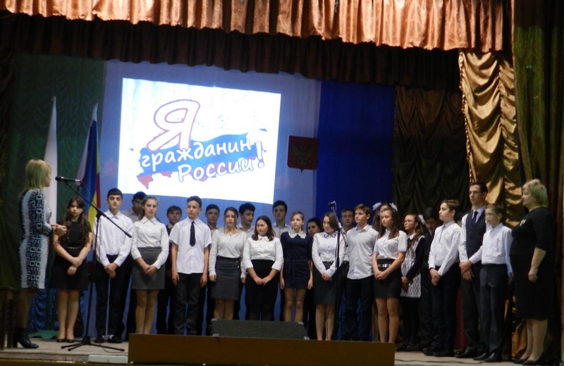 12 декабря в Кринично-Лугском сельском клубе прошло торжественное вручение паспортов юным гражданам Кринично-Лугского сельского поселения. Глава Администрации Куйбышевского района Мирющенко Н.В. вручила паспорта 24 мальчишкам и девчонкам, среди них учащиеся нашей школы: Комаров И.,Дубовская О.,Братченко Д.,Болдарев В., Ахмадулина Г.