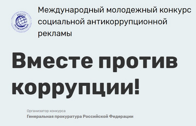 Генеральная прокуратура Российской Федерации проводит Международный молодежный конкурс социальной рекламы антикоррупционной направленности на тему: « Вместе против коррупции!»